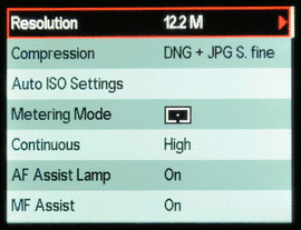 It’s odd that there’s no option to save DNG files alone. We always need one JPEG file, whose quality can be set in the menu. It’s too bad, as the camera is no speed and buffer demon, so loading it with an additional JPEG file doesn’t improve the situation for sure. In the table below there are 1:1 picture clippings of our test scene, taken in full resolution, at ISO 100 and in both compression modes.