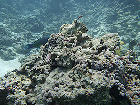 You must remember that removing blue dominant from a photo is often performed by saturating red and orange hues - the colours which are first absorbed by water particles. If an object not deeply submerged and positioned close by is included in your frame, you should take into account the fact that it might be rendered as unnaturally purple.
