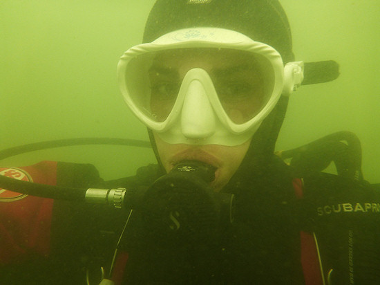 Photo taken in a lake at 6 m with the visibility of 2-3 m. “Beach and snorkeling” mode was used with a higher saturation level of red colour. Click to enlarge. |