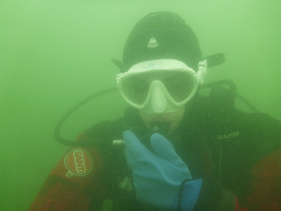 Photo taken in a lake at 6 m with the visibility of 2-3 m. „Underwater photo” mode was used. Click to enlarge. |