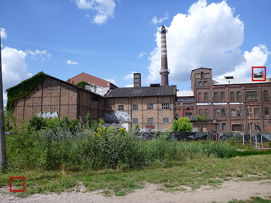 The following crops of the same scenery are mainly a test of the cameras’ optics. The first fragment allows us to assess the chromatic aberration level and the way a camera’s software deals with the automatic correction of that aberration. The second crop shows an almost extreme frame corner, where the resolution decrease is the most pronounced and the vignetting- the highest due to imperfections of optical path.