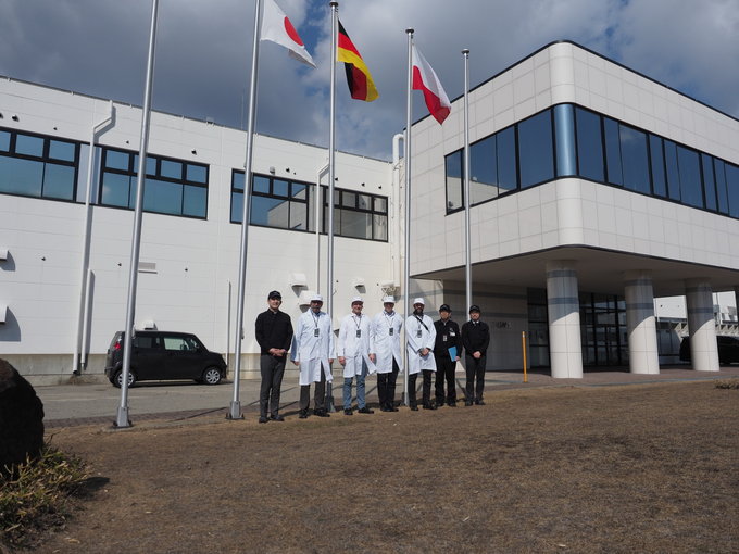 Such information we got during a short presentation which started my visit to the factory. I was accompanied by the representatives of the German Sigma dealer. We were given special overalls, they took a commemorative photo of us and then we could progress to production halls. I noticed that in front of the main entrance there were three flags flying: the Japanese, German and Polish one. It was a very nice gesture of our hosts.