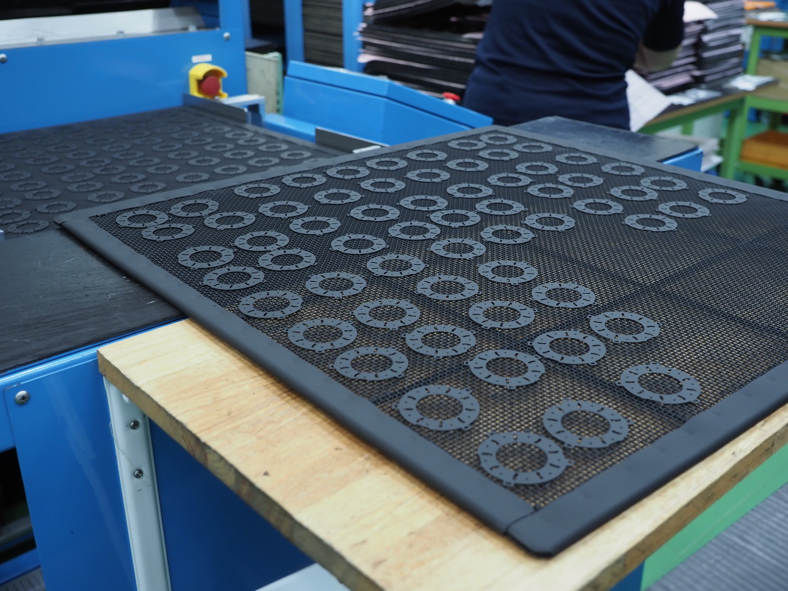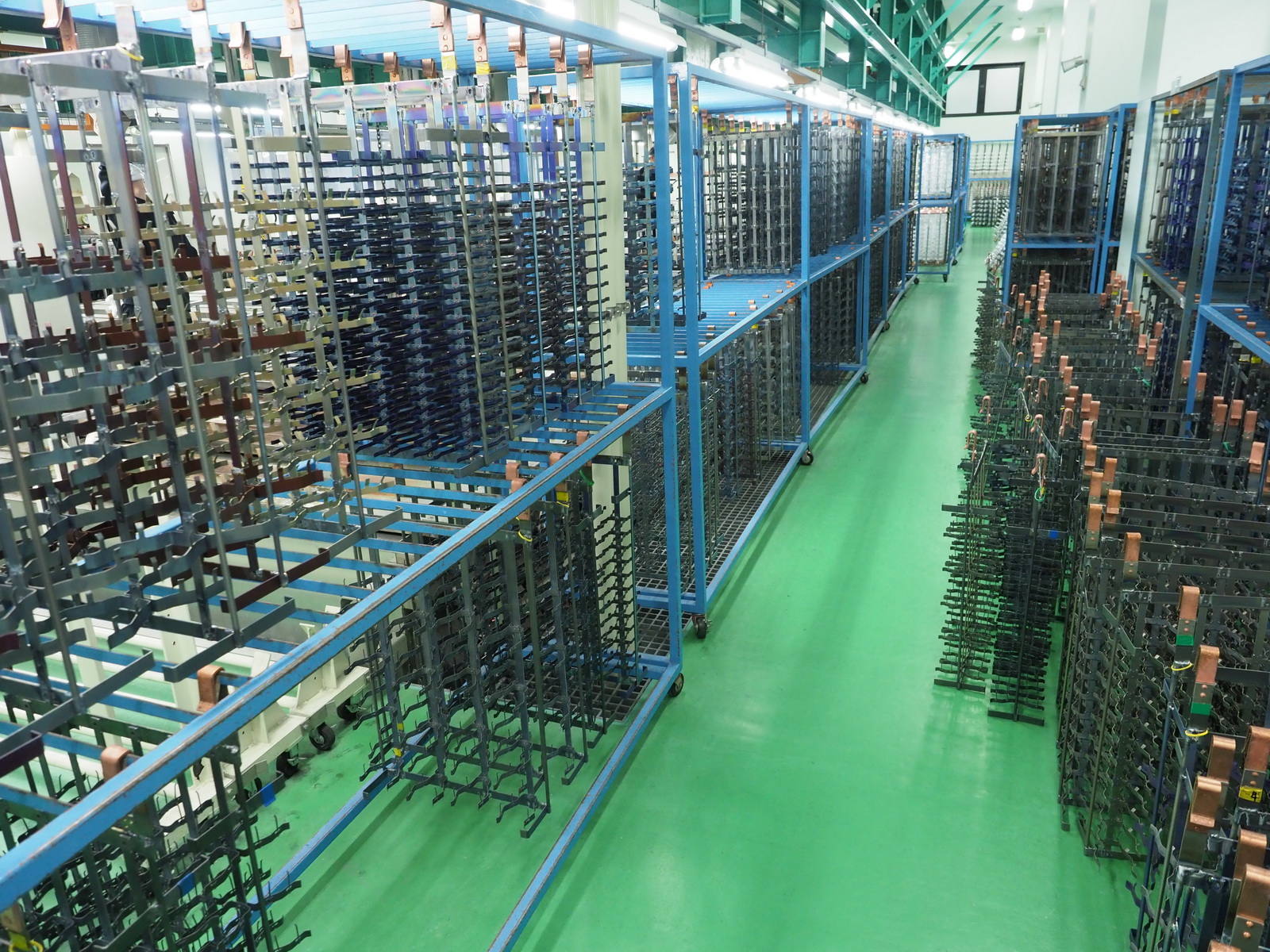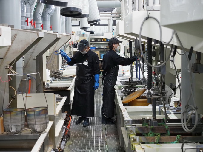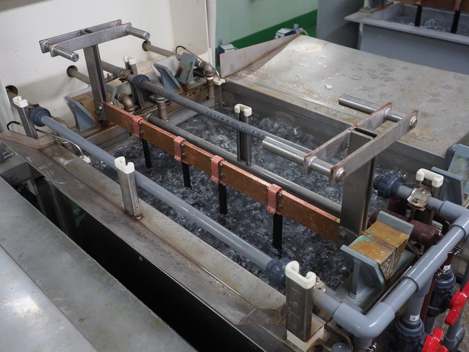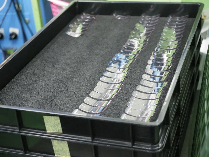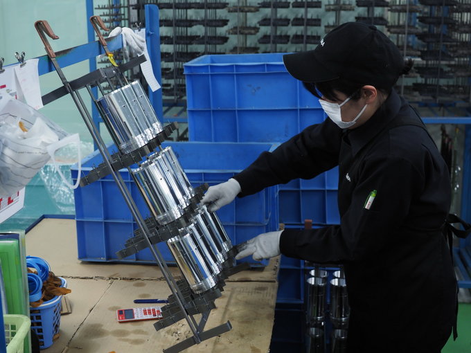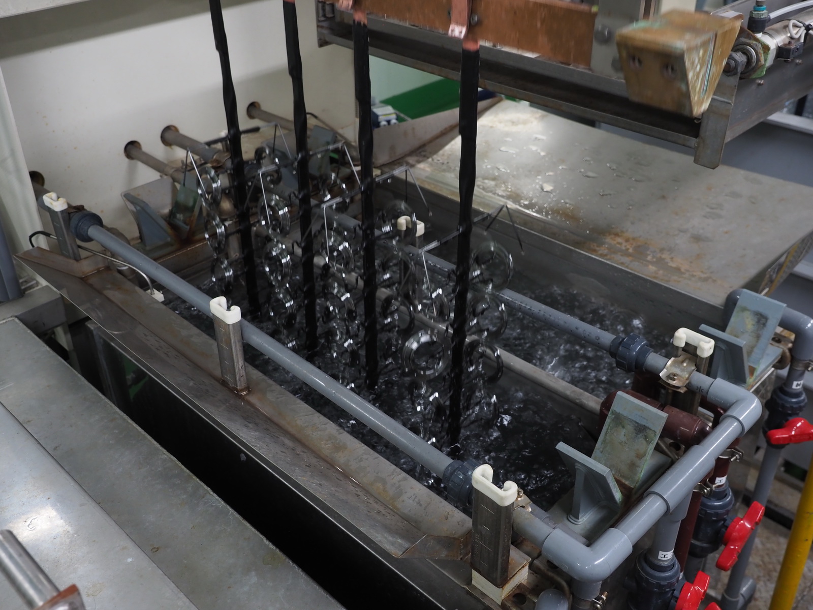 Every part which needs to me marked in any way is manually put into a machine which paints it. So are processed not only tubes but also transparent plastic parts with distance scales or buttons of cameras, like the one shown below with an inscription AEL. After adding appropriate marking the quality of paint is checked – a very painstaking process.