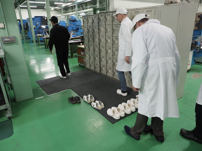 Already entering the main factory building we had to take our shoes off and put special slippers on. Then we had to change those slippers several times, depending on what part of the factory we were visiting.