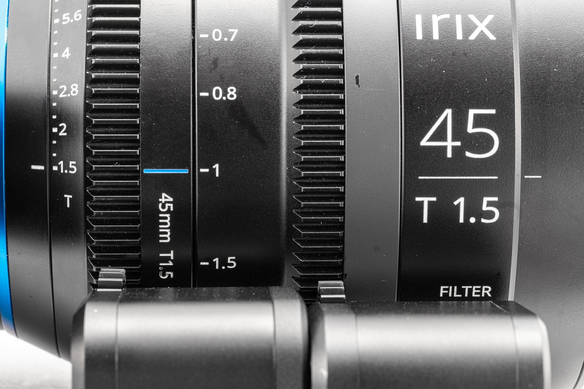 An attentive observer is able to notice another difference. The iris ring of a cine lens (like the lens itself) is described not in terms of focal ratio ('f) but transmission ('T'). What's the difference? In simple terms a T2 cine lens allows inside as much light as an f/2 still lens if it featured perfect glass and ideal anti-reflection coatings. Of course in reality neither glass nor coatings are perfect so quite often the transmission value is a bit different than its respective aperture value and that difference is easy to spot – it's enough you compare cine lenses and their still equivalents. In the case of the Irix 45 mm T1.5 Cine it would be the 45 mm f/1.4 still lens and in case of the 150 mm T3.0 Cine device – the 150 mm f/2.8 photographic lens.