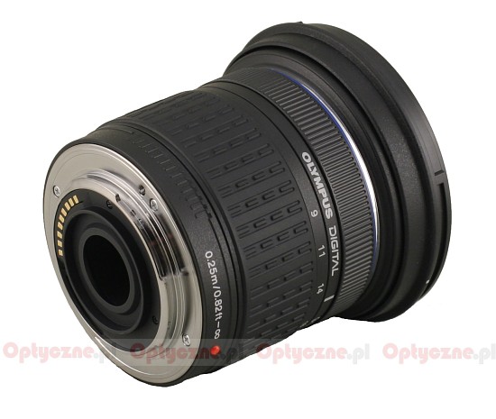 After the focus ring you’ll find a manual zoom ring. It is relatively narrow and there’s no distance scale. As in many other Olympus models, the manual focus system is not purely mechanical but drives the focusing group indirectly via the lens's autofocus motor. You must get used to such a solution. The lens ends with a non-rotating filter thread, 72 mm of diameter.