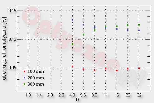 The situations get a little bit weaker when we increase focal length. The value of chromatic aberration in this case reaches 0.12%, which is an average to large level. Taking into consideration the APO, the results could be better, although there are no major reasons to complain about them.