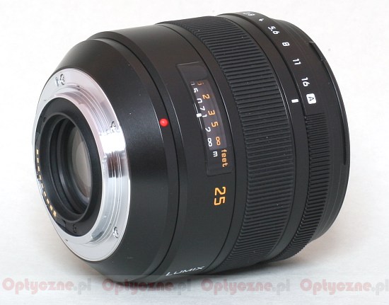 The significant weight is also a result of the inner construction, which consists of 10 elements in 9 groups. Peeking here, we can find out that the typical f/1.4 50 mm lenses usually consist of 7 elements in 6 groups, without any special glass elements whereas the Leica manufacturers weren’t mean with the last element type – we’ve got as much as four low-dispersion glass elements (3of the ED class and one Super-ED) and one aspherical element. All of this is complemented by a seven diaphragm blades aperture, which can be closed down to f/16.