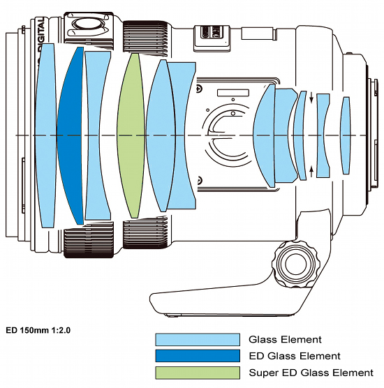 As far as the internal construction is concerned, we’re dealing with 11 lenses set in 9 groups. One element is made of ED glass, and one more of Super ED glass. Inside the lens we find a circular diaphragm of nine blades, to form the minimum aperture of f/22.