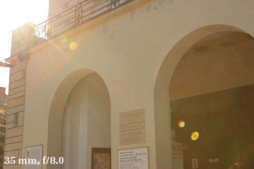 A lens of the highest class, new kinds of glass, a redesigned construction, the best available multi-layered reflexive coatings – all that suggest that we shouldn’t have even the slightest problems with the work against bright light. Still…you can notice artifacts at practically every focal length and for some focal length/aperture combinations they happen to be even quite intense. It is not the level we have expected, not from such an expensive L-series instrument anyway. The fact, that we get from Canon a lens hood included in box is our only consolation.