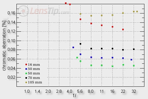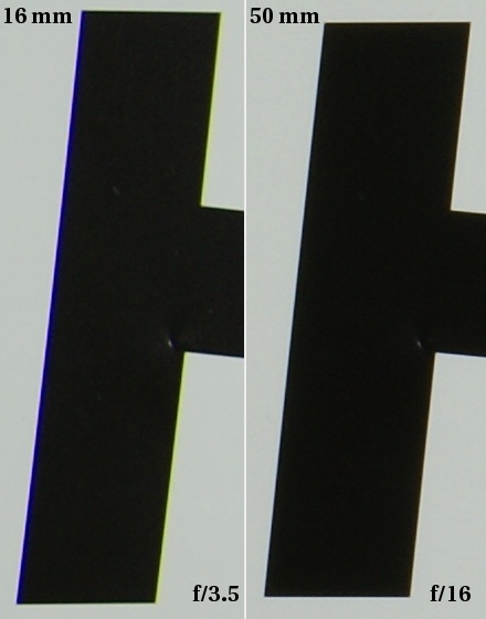 The Sony DT 16-105 mm gives in to the Zeiss 16-80 mm in this category as well. The chromatic aberration level wasn’t high anywhere in the latter; when it comes to the Sony, though, we notice high value at the both ends of the focal lengths range. Fortunately at 30,50 and 70 mm the aberration is low or just momentarily medium.