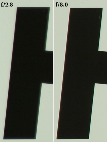 The answer to the question asked at the end of the previous chapter can be simple after all. In a not very complex prime constructions it is easier to correct lateral and horizontal chromatic aberration so maybe at least in this category the Canon 2.8/20 will knock out zoom competitors? No such luck. The Canon fares here only slightly better. The difference is noticeable but so small that it might be not worth our attention.