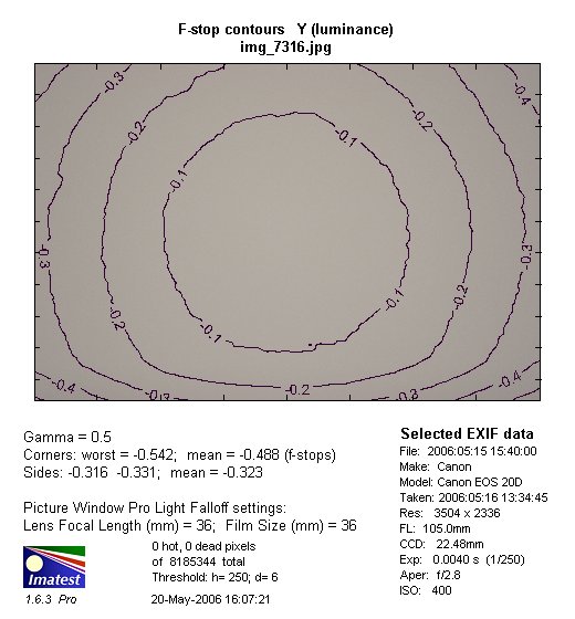 It is worth emphasizing, though, that on a 35 mm detector the vignetting will be higher but it might become bothersome only by f/2.8.
