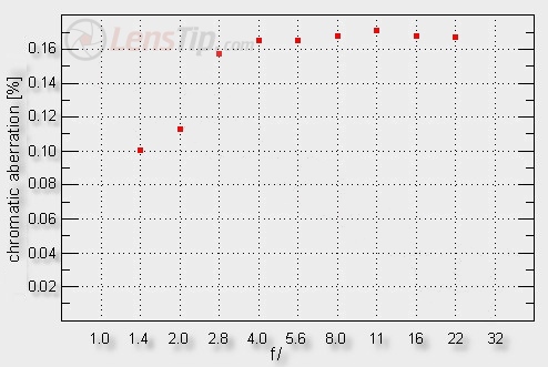 In this category the FA 50 mm f/1.4 didn’t exactly distinguish itself. As near the maximum relative aperture the chromatic aberration level can be still described as medium, up from f/2.8 it increases to a high level and stays there to f/22. The 40 mm Limited lens fared a lot better.