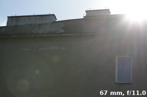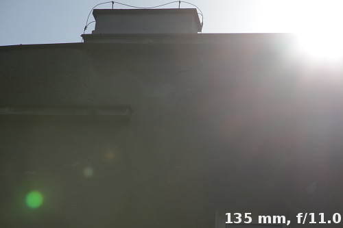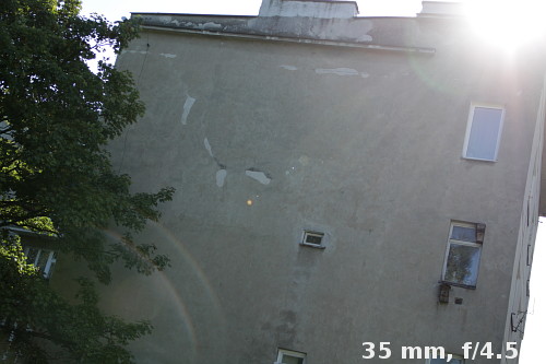 You can catch flares at all focal lengths when you work against bright light. Their number and intensity is average though. The lens can’t be praised here but, on the other hand, you also shouldn’t criticize it too harshly.