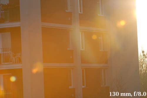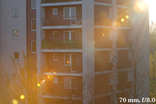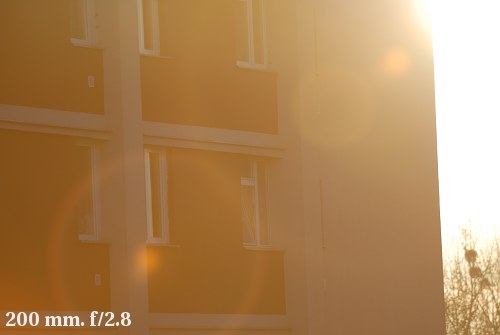 In this category the Sigma 70-200 f/2.8 fared very well, the Canon 70-200 f/2.8L IS very weakly for a change. What about the Nikkor? Unfortunately the performance of the tested lens is closer to the weak result of the Canon. It’s enough to glance at the photos below to find out that the work against bright light can be problematic at all focal lengths.