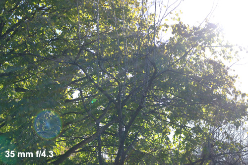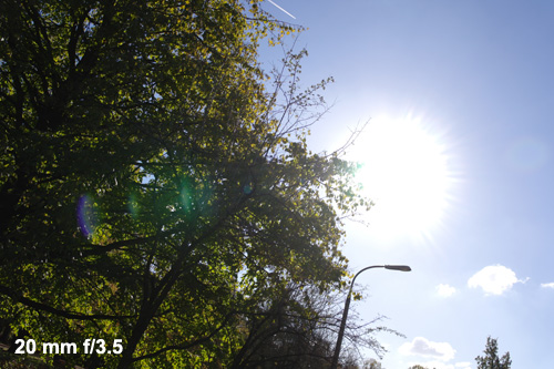 Samsung NX 20–50 mm f/3.5–5.6 fares averagely well while working against bright light. We didn’t have to toil to find flares like those presented below. The most disturbing are the flares visible at the widest angle; they can be caught even if the source of light is situated near the frame centre. No lens hood will be helpful in such a popular landscape setting. By the way we don’t get any lens hood with the lens. When the source of light situated on the very edge of the frame the significant contrast decrease is also clearly noticeable.