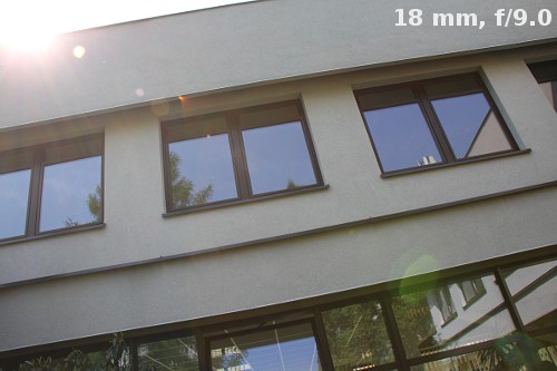 In the case of the Canon EF-S 18-200 mm IS the level of flares, noticed during work against bright light can be assessed as medium. Light artifacts can be registered at practically any focal length but they aren’t very intensive and their number is not exceptionally high either.