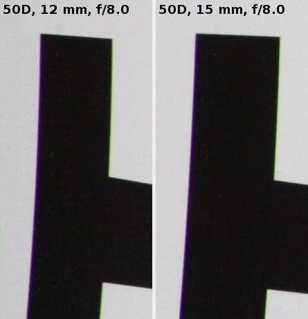 The aberration level is medium, momentarily approaching high. The tested lens doesn’t deserve to be praised here but, on the other hand, such a level is still much lower than that of the Tokina 10-17 mm or the Sigma 4.5 mm and comparable to that of the Sigma 10 mm. Overall the Canon compares quite well to its rivals in this category.