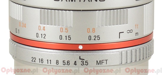 When we want to set focus we can use the appropriate ring with a distance scale. Unfortunately the producer didn’t anticipate any place for a depth of field scale. Pity.