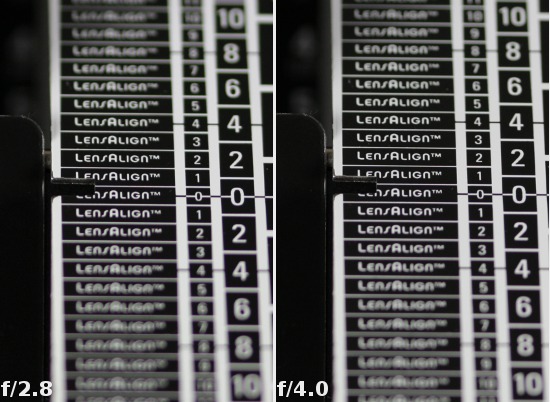 The graph below shows the result of our measurements of lateral chromatic aberration on the edge of the APS-C sensor and full frame. The lens on both of them shows a similar level, amounting to about 0.02%, which, additionally, doesn’t depend on the aperture value. Of course we should mention it is a negligible level, not disturbing at all. Here the Sigma fares a bit better than the Canon which had the aberration level ranging from 0.06-0.08% and a bit better than the Nikkor, which results were near 0.05-0.07%.