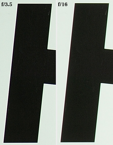 For any Olympus 3.5/35 Macro user the chromatic aberration problem is practically nonexistent. The graph below shows us clearly that its level remains constant, regardless of the aperture, oscillating near 0.05% which we consider a low value.