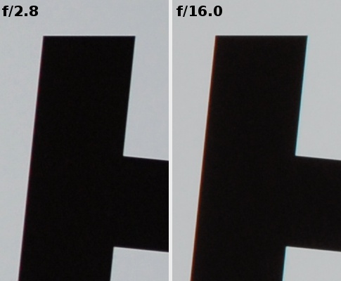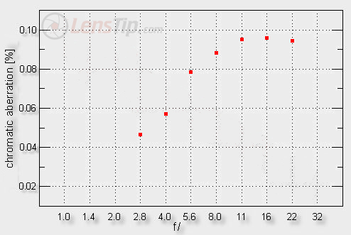 When it comes to the lateral chromatic aberration it would be difficult to complain about anything. Near the maximum relative aperture it is low but then increases along with the stopping down and, after a significant stop, it reaches medium levels.