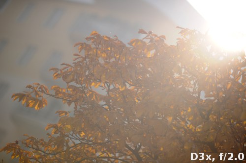 The tested lens works well against bright light. At the maximum relative aperture there are almost no artifacts. On stopping down they appear but only when you get the sun inside your frame and such a situation is extremely rare dealing with a 200 mm lens. If it happens, however, you can always use a huge hood which comes in the accessory kit.