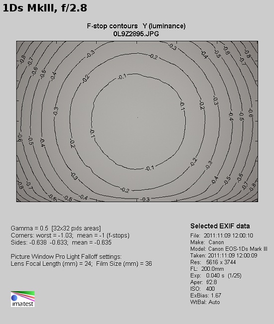 According to our expectations the results, presented here, are noticeably better than those of the new 70-200 mm f/2.8L IS USM II at the maximum focal length. In its case the light fall-off in the frame corners amounted to as much as 39% so a value definitely higher than that of the fixed focal lens, tested here.