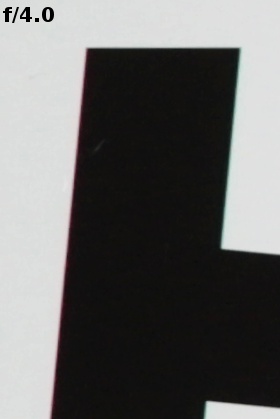 The lateral chromatic aberration doesn’t depend on the aperture value almost at all for a change – in the whole range it keeps the level of 0.09%, which is considered as a borderline between low and medium aberration values. Once again such a result is better than that of the Sony 2.8/16, which showed very high aberration level (ranging from 0.17 to 0.22%).