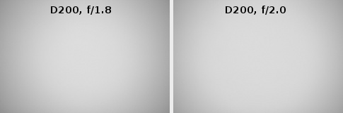 At the maximum relative aperture you can see high vignetting which value we assessed as 53% (-2.19 EV). By f/2.0 it is hardly much lower, amounting to 48% (-1.88 EV) The brightness loss in the frame corners is also visible by f/2.8 where it reaches 31% (-1.07 EV). Only by f/4.0 and f/5.6 we deal with a moderate level of that aberration as it is respectively 19% (-0.62 EV) and 14% (-0.45 EV). On further stopping down the aperture you can’t notice any improvement because the vignetting keeps the level near 13% (-0.40 EV).
