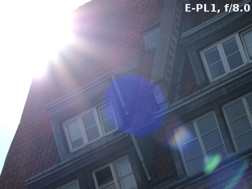 With such a narrow angle of view flare problems rarely appear. Still, when the sun is situated near a corner of the frame some artefacts can be noticed, both at the maximum relative aperture and on stopping down. Here the lens deserves an average mark at most.