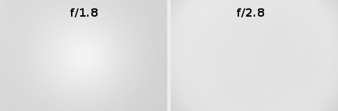 That aberration is slight already at the maximum relative aperture, where the measurements show the brightness loss in the corners amounting to only 12% (-0.36 EV). That value decreases to 9% (-0.27 EV) by f/2.8.