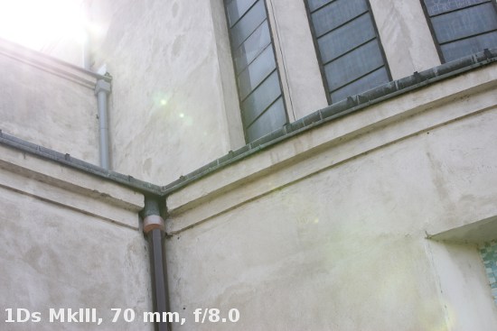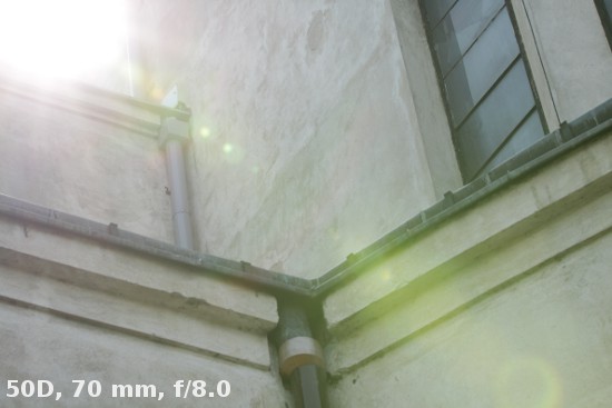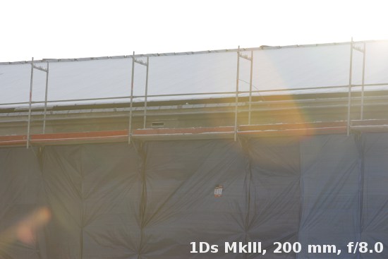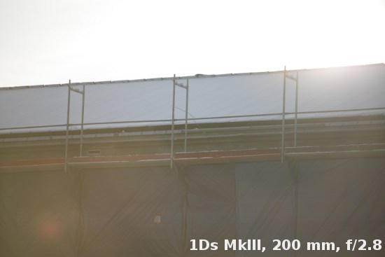 The work against bright light is not the strong point of any 70-200 mm f/2.8 device. Currently such constructions include over 20 elements positioned in almost 20 groups; it gives you almost 40 air-to-glass surfaces to refract the light. What’s more, closed mechanical constructions with the inner focusing often feature a huge, front element, not covered by anything – as you can guess it doesn’t help either.