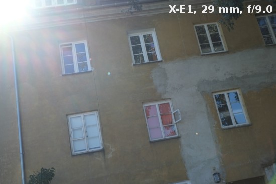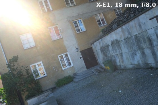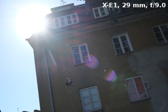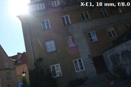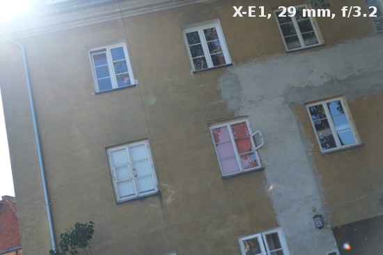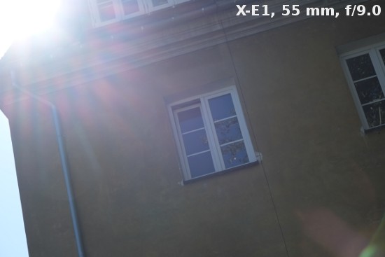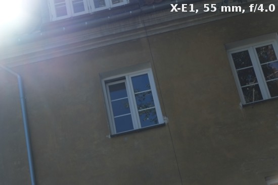 The Fujinon’s 18-55 mm performance against bright light can be described as good. At the maximum relative aperture, no matter what focal length you employ, it is very difficult to catch any glare. A bit more light artifacts can be seen after stopping down but even then their number is not huge and they are created only if the source of light is in a very specific location (right behind the frame corners). You must try hard in order to catch them in a photo.