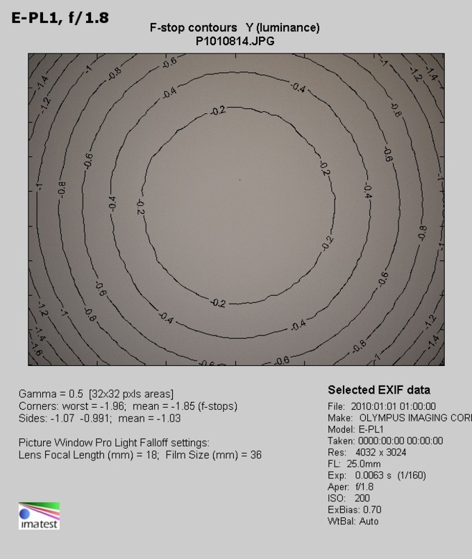 As the Olympus 1.8/25 corrects the distortion well and doesn’t require any software assistance, JPEG images, compared to those saved as RAW files, aren’t cropped so the differences in vignetting between RAWs and JPEGs are small.