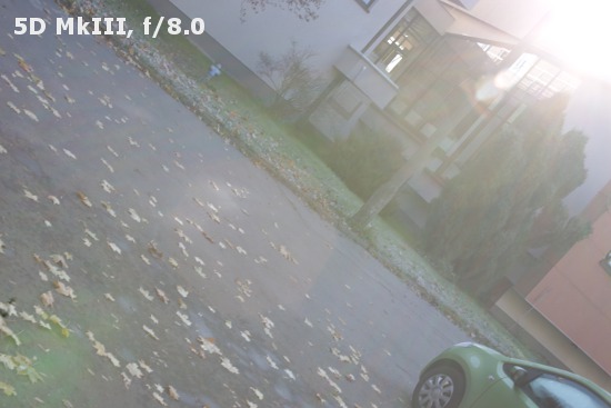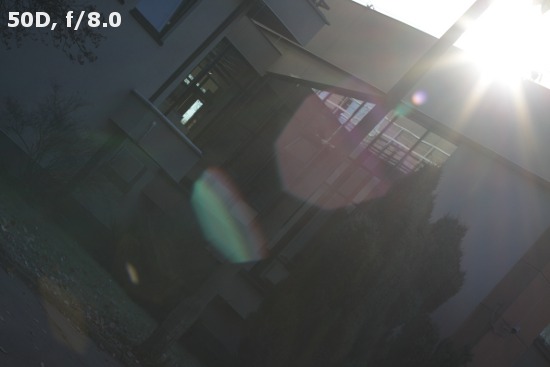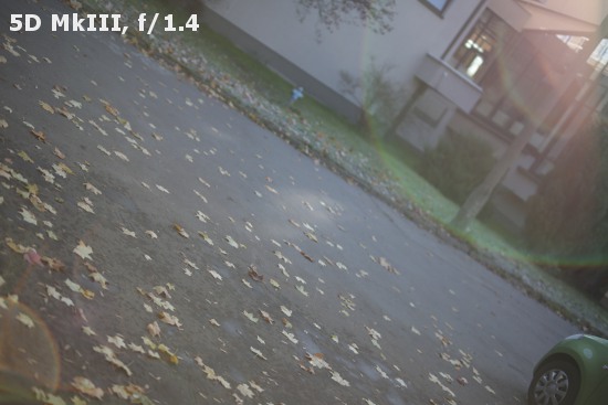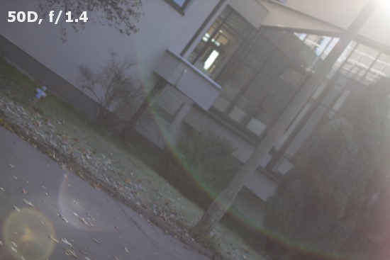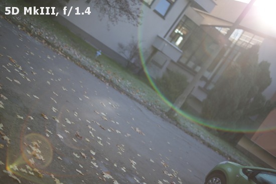 The Samyang’s 1.4/50 performance against bright light cannot be assessed in a positive way. The flares are clearly visible no matter whether the sun is inside or a bit outside the frame. What’s more the light artifacts can be pretty big and in many cases you notice a distinct contrast decrease.