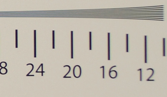 At the end of this chapter traditionally we present crops taken from photos of our resolution testing chart which were saved as JPEG files along with RAW we used for the analysis above. Please notice that the further you move away from the frame centre the quicker image sharpness decreases.