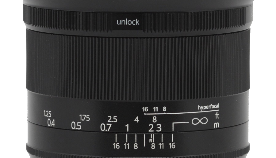 Still it would be hard not to appreciate the efforts of the producer to enhance the comfort of work. You get hyperfocal distance marks, you get an infrared infinity mark and the focus ring can be blocked in any place; additionally you get a tactile click feedback when the ring exceeds infinity. Still you have to keep in mind the fact that the feedback is just an approximate indicator because the precise value of the infinity position depends on the temperature and the length of the wave. On the other hand Irix is the only producer that offers you an opportunity to calibrate the resolution scale on your own so the position on the scale (the mark) and the infinity click always indicate the real infinity for given working conditions.