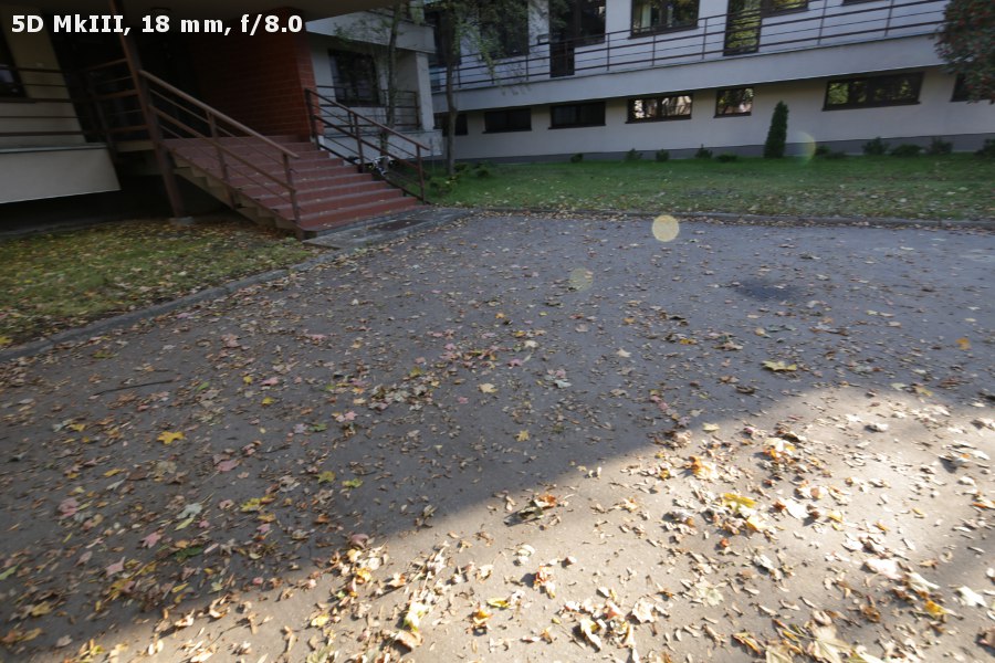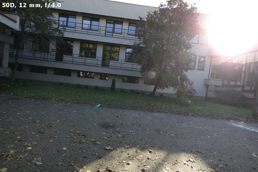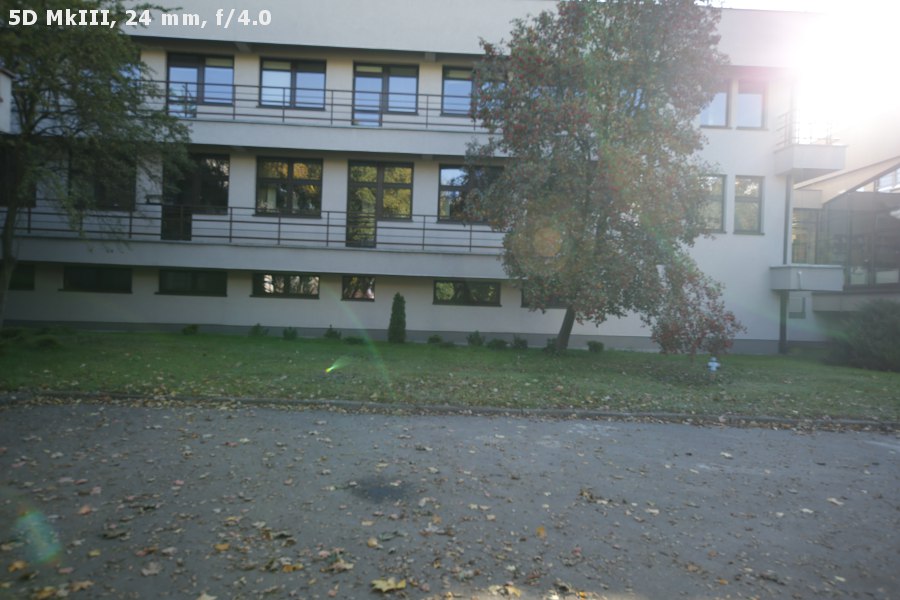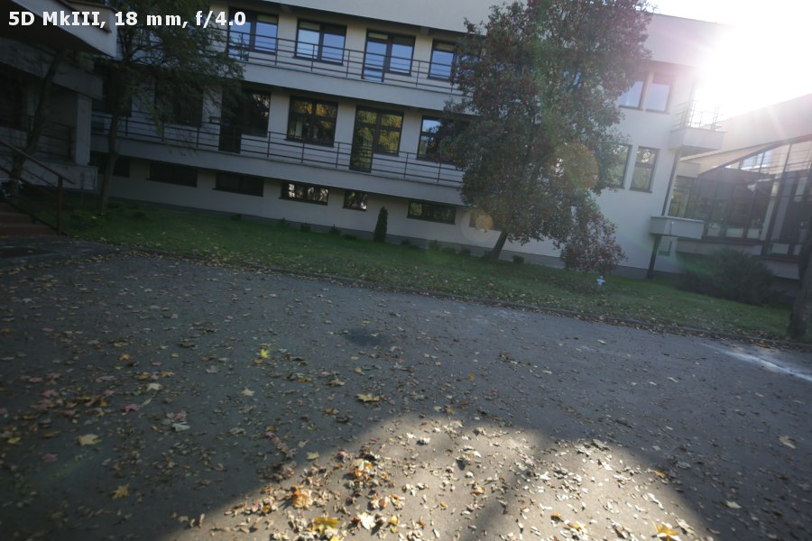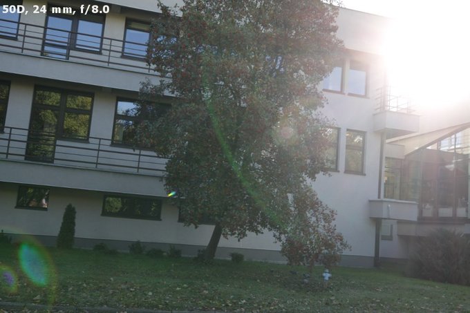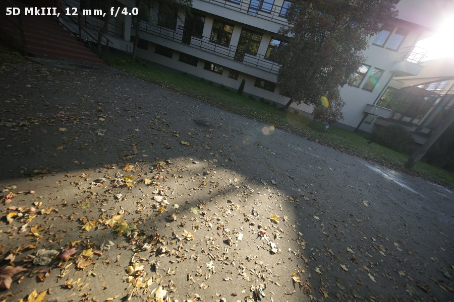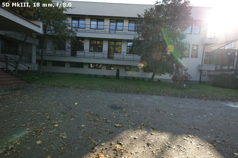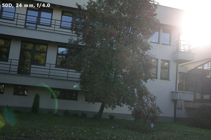 A complex optical construction, a lot of air-to-glass surfaces and a huge front element which cannot be sheltered because the angle of view is very wide – these obstacles didn’t make us especially optimistic when it came to ghosting and flares category. Indeed the lens doesn’t perform here especially well. You can catch flares with the sun in the frame and outside the frame; still the overall situation is noticeably better than the performance of the Canon - the flares of the Sigma are less numerous and they come with lower intensity.