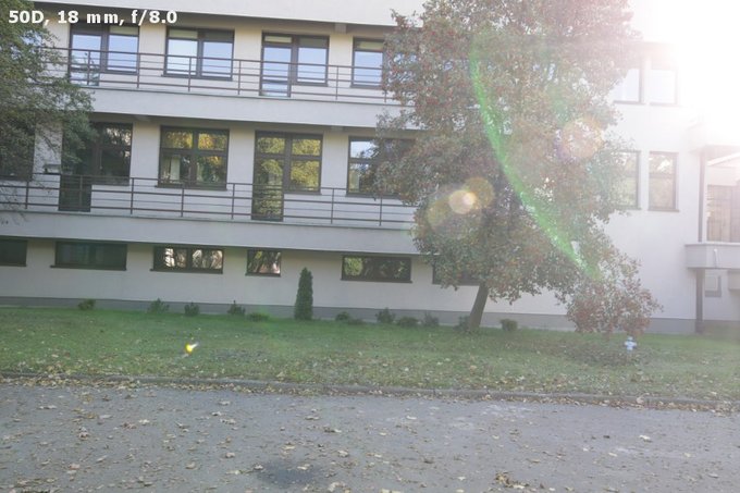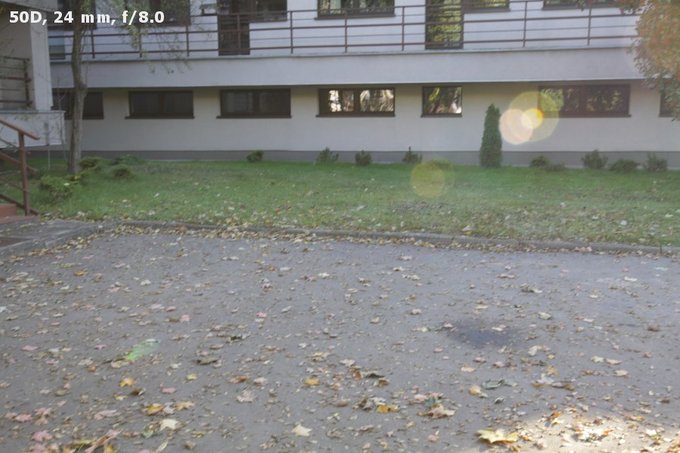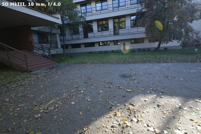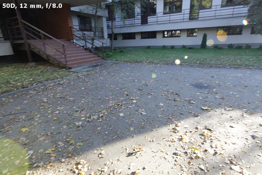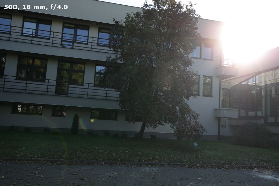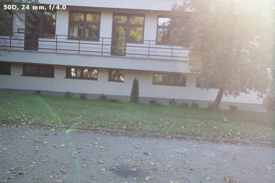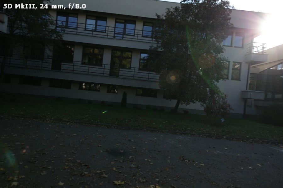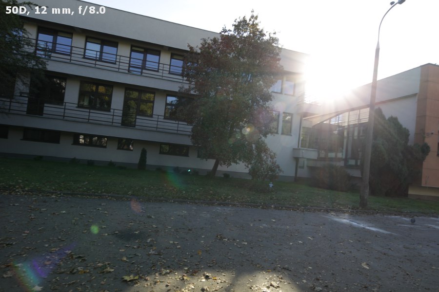 A complex optical construction, a lot of air-to-glass surfaces and a huge front element which cannot be sheltered because the angle of view is very wide – these obstacles didn’t make us especially optimistic when it came to ghosting and flares category. Indeed the lens doesn’t perform here especially well. You can catch flares with the sun in the frame and outside the frame; still the overall situation is noticeably better than the performance of the Canon - the flares of the Sigma are less numerous and they come with lower intensity.