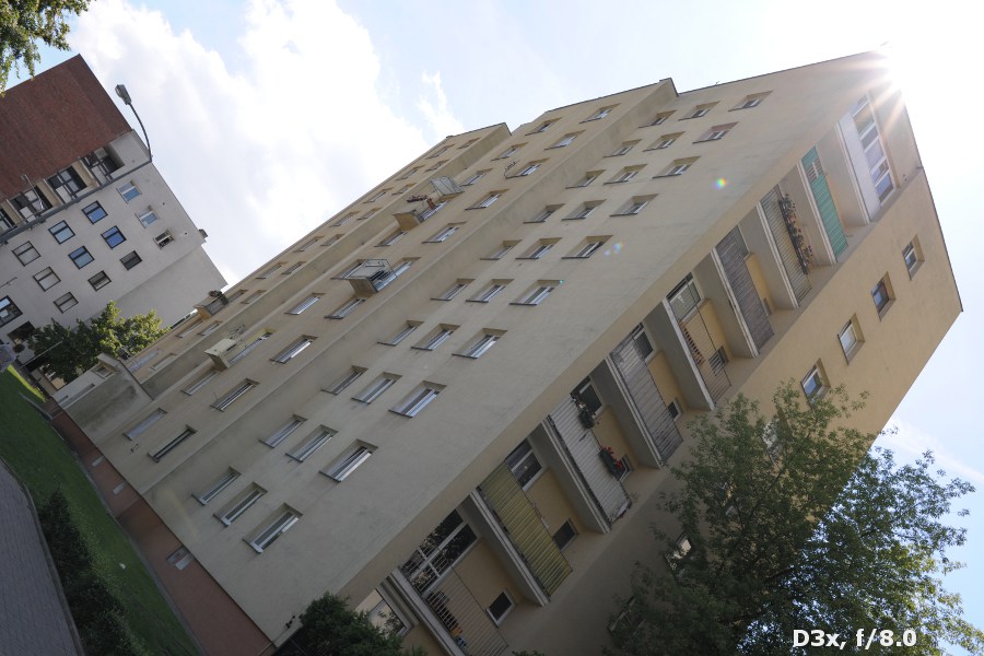 The Nikkor AF-S 28 mm f/1.4E ED followed the example of the expensive Otus and its performance against bright light is very good. Even though the photos are not completely devoid of light artefacts it is not so easy to catch them. When you actually manage to do so you find out their intensity is low and the area they take – not very big. It’s obvious the coatings and inner construction of the tested lens perform as they should.