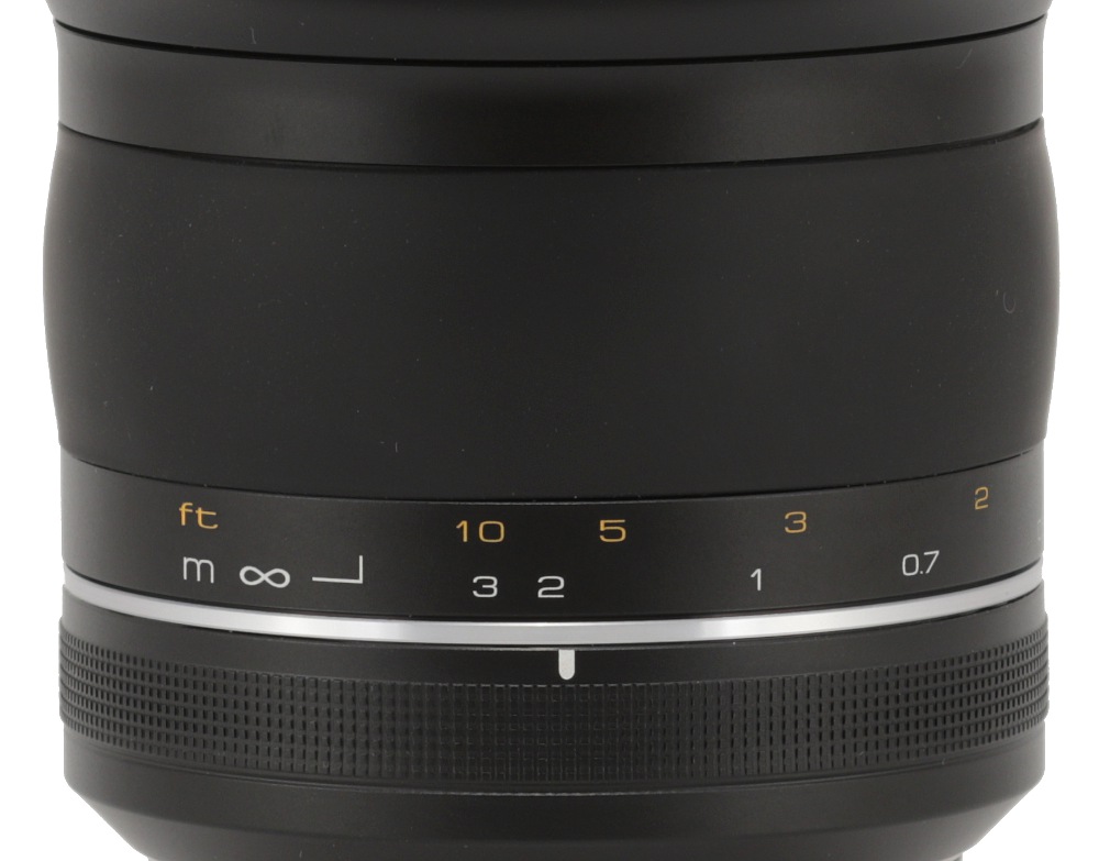 Focusing is performed with the help of a very comfortable, rubberized ring which working range amounts to 250 degrees. With such parameters of the lens that value is enough to ensure you precise settings (compare that to the range of the ring featured by the Irix 2.4/15 which was just 145 degrees). Still we are surprised why a classic manual lens doesn’t have any depth of field scale. It seems the design was more important than the utility of the instrument. Pity.
