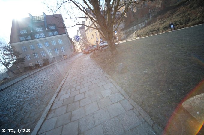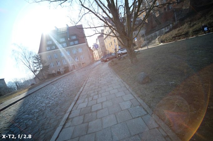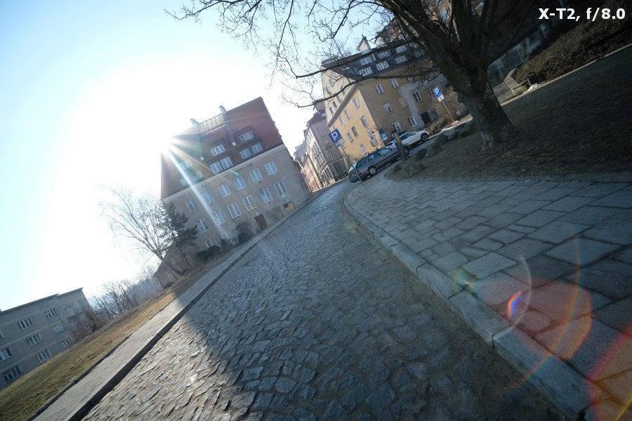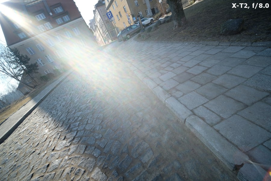 The tested lens’s performance against bright light is hardly the best. When the sun is inside the frame you catch classic flares and small ghosting is visible even if you move the source of light far away from the frame. Problems also appear when the sun is put close to the very corner of the frame; in that case you might overexpose large areas of your photos and destroy it completely. That effect becomes especially bothersome on more pronounced stopping down.
