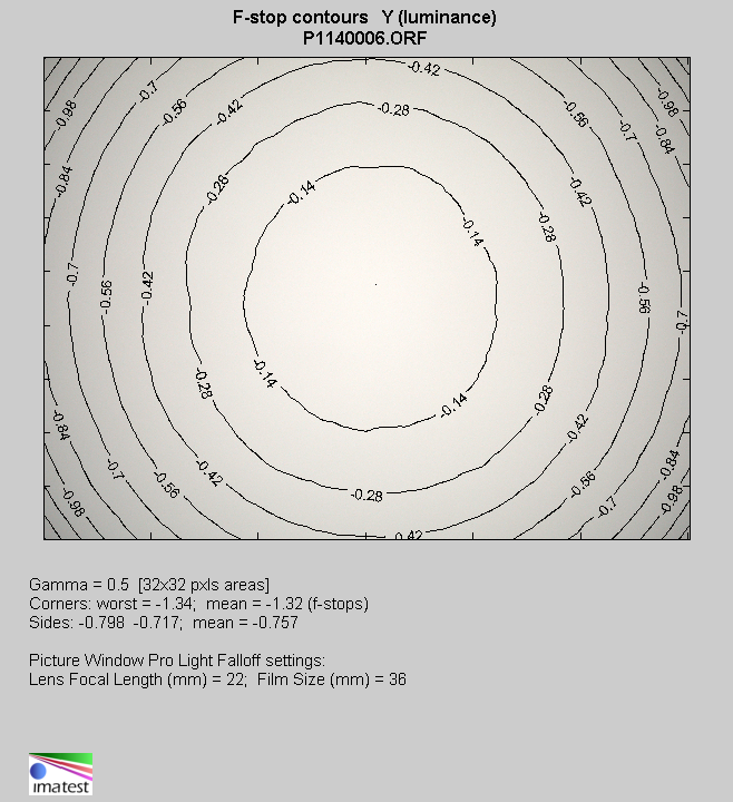 It’s also worth adding that the results, described here, compare very favourably to the results of the rivals of the tested lens. For example the Canon EF 35 mm f/2 IS USM had 66% of vignetting, and in the case of the Fujinon XF 23 mm f/1.4 R the brightness loss amounted to 50%.