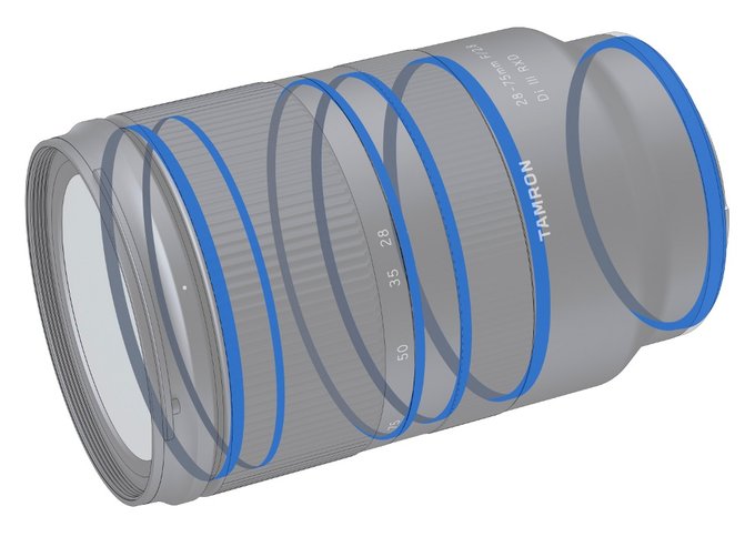 The following chart presents basic properties of the tested lens and other full frame f/2.8 instruments which focal length starts from 28 mm and ends at 70-75 mm. In the majority of cases you deal with quite old devices; nowadays manufacturers tend to focus more on 24-70 mm plus f/2.8 parameters. When it comes to optical design, it might be surprising that the new Tamron is hardly more complex than older constructions but it definitely prevails when it comes to the number of special elements. It is also relatively lightweight and quite long but its width doesn't differ much from the widths of its rivals.