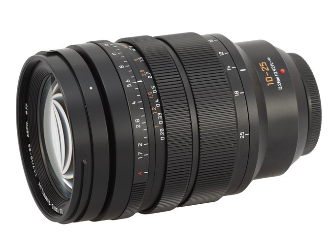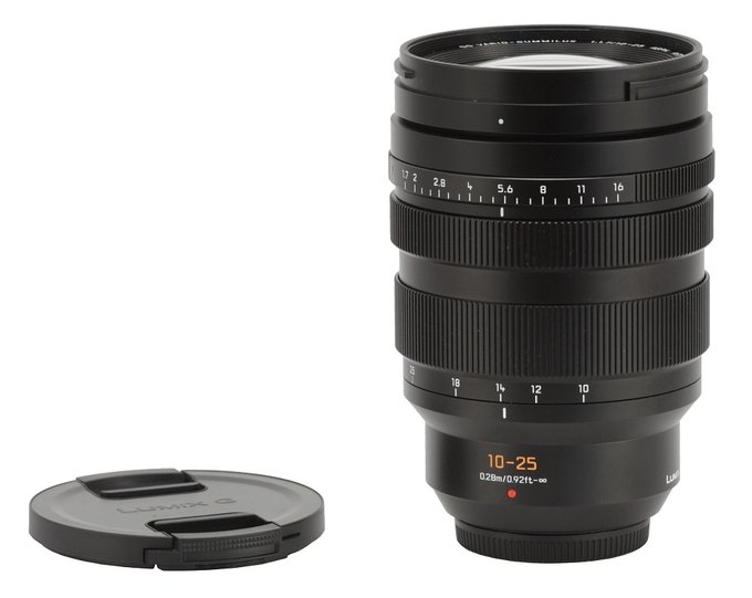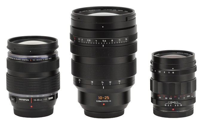 I suppose it would be more convenient just to look at the photo below where the Panasonic Leica DG Vario-Summilux 10–25 mm f/1.7 ASPH is positioned between two Micro 4/3 lenses , the Olympus M.Zuiko 12–40 mm f/2.8 ED PRO and the Voigtlander Nokton 25 mm f/0.95.