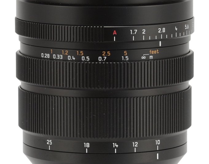 The tested lens starts with a metal mount which surrounds a contact plate and a rear element, 22 mm in diameter, which doesn't move. On the black ring with embedded contacts you can find an inscription „Made in China”. It is interesting, by the way, that such a top-of-the-range, expensive instrument with the renowned Leica logo, was produced in a country where the cost of work is noticeably lower than in Japan or in the European Union. Well, as long as the quality control remains on a very high level cost optimization is all right I suppose.