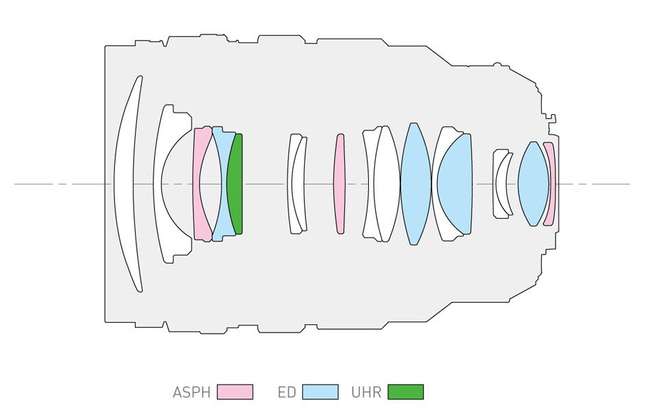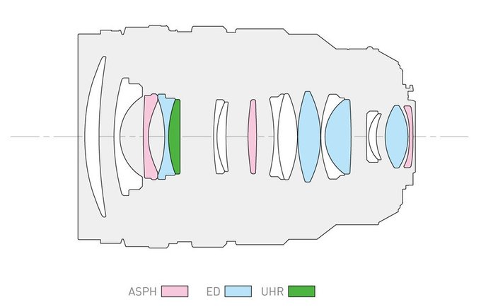 When it comes to the inner construction you deal here with 17 elements positioned in 12 groups, including four ED (Extra-low Dispersion glass) lenses, three aspherical elements, and one made of ultra high refractive index glass. Inside you can also find a round aperture with nine diaphragm blades which can be closed down to a value of f/16.