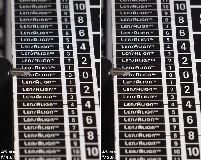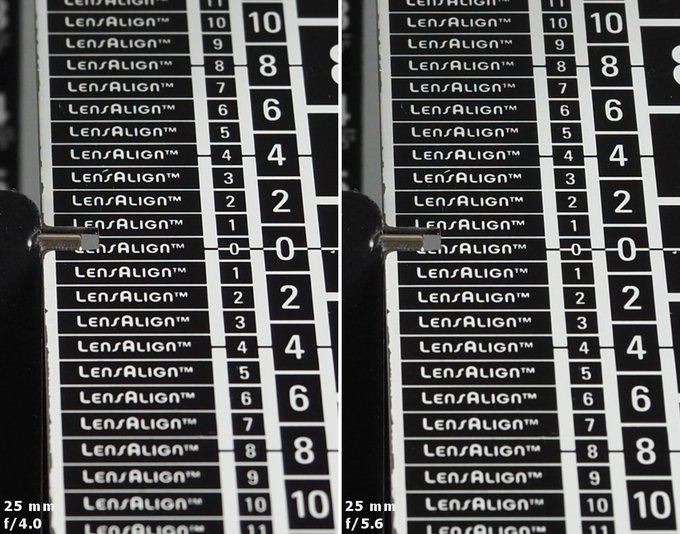 First photos of this chapter prove that the lens doesn't have any 'focus shift' effect – circles produced before and after the focus aren't perhaps identical but they don't show any significant differences either. All of this indicates that there are no serious problems with correcting spherical aberration.| Olympus E-M5 II, 25 mm, f/4.0, before | Olympus E-M5 II, 25 mm, f/4.0, after |